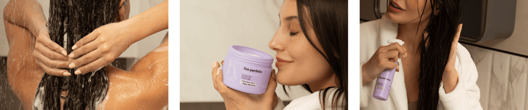 Um ritual completo de cuidados capilares desenvolvido especialmente para cabelos lisos naturais ou com progressiva, que precisam de hidratação, disciplina e proteção diária.