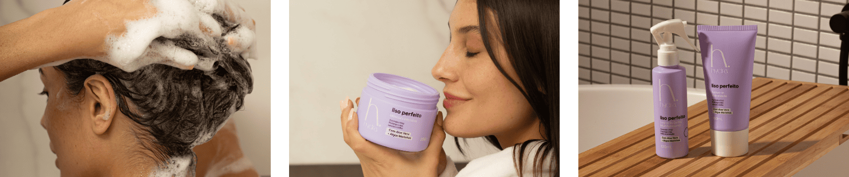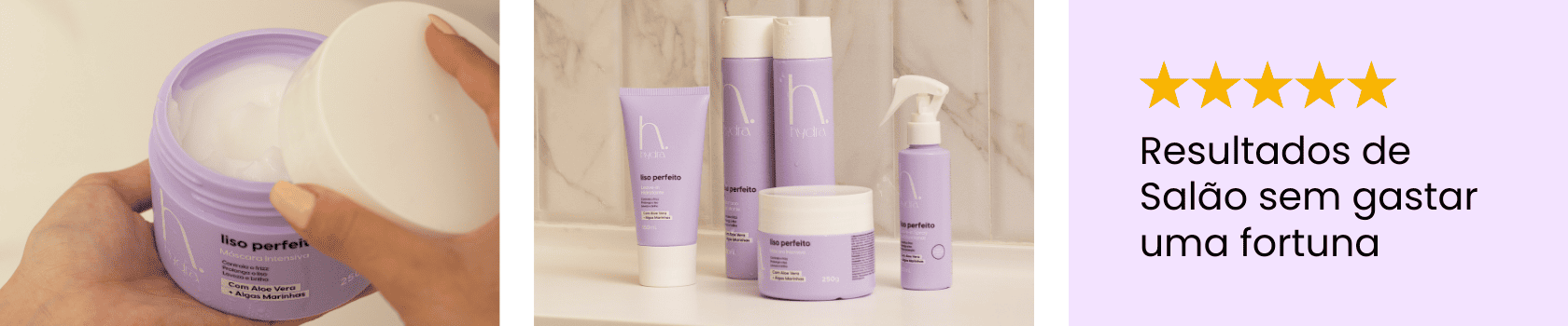 O Kit Liso Perfeito Hydra foi desenvolvido para atuar diretamente na fibra capilar, ajudando a restaurar, alinhar e proteger os fios de forma contínua.