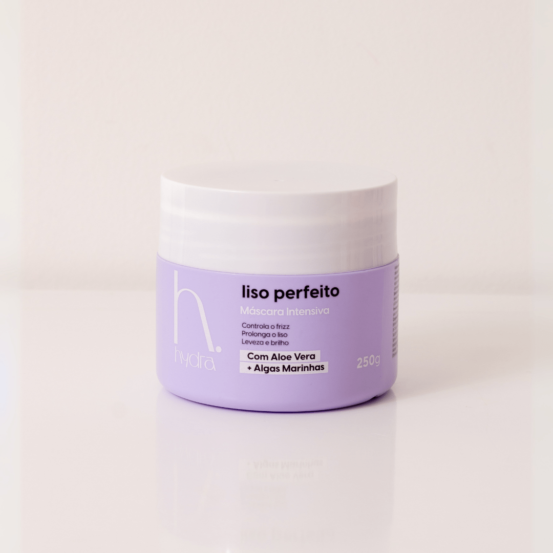 A Máscara Hidratante Liso perfeito Hydra Cosméticos foi desenvolvida exclusivamente para cabelos lisos naturais ou alisados. Sua proposta é definir e selar as cutículas, auxiliar a manter os fios hidratados e alinhados por mais tempo. Elaborado com Blend de Aminoácidos + Sódium PCA, Aloe Vera e Algas Marinhas, possui ação reparadora, revitalizante e hidratante que proporcionam cabelos disciplinados, com volume controlado, macios, desembaraçados, sem frizz, com toque sedoso e brilho intenso. Livre de parabenos.