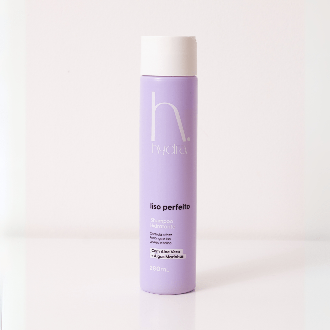 O Shampoo Hidratante Liso Perfeito Hydra Cosméticos foi desenvolvido para cabelos lisos naturais ou alisados. Ele limpa suavemente e promove uma textura mais lisa aos fios. Elaborado com Creatina, Proteína do Trigo, Aloe Vera e Algas Marinhas, proporciona ação reparadora, revitalizante e hidratante. O resultado é cabelos saudáveis, macios, leves e brilhantes. Livre de sal e parabenos.